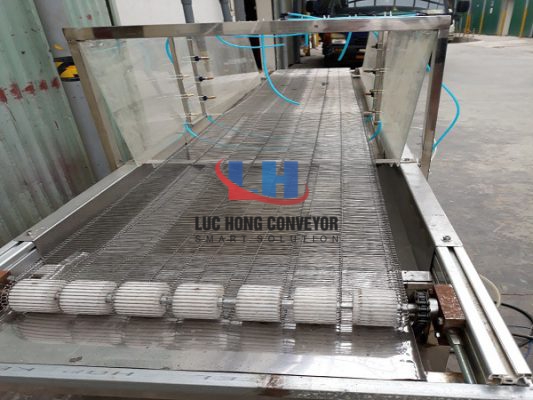 Băng tải lưới là là dòng băng tải có belt băng tải tại dạng lưới, phần xích được liên kết với nhau bằng Inox hoặc dạng xích lưới nguyên cụm. Loại băng tải này có khả năng chịu nhiệt tốt có thể chịu lực kéo và căng lớn mà không biến dạng. Bởi vậy mà có thể sử dụng cho những ngành sản xuất thực phẩm, bánh kẹo, sản xuất phôi thép và mày công cụ hay vận chuyển các mặt hàng thủy hải sản để đông lạnh.v.v