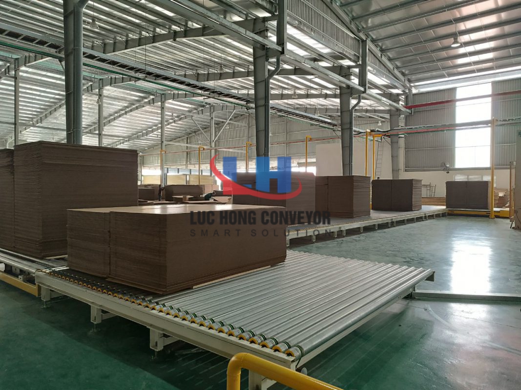 Băng tải con lăn– vận chuyển thùng hàng, kiện hàng.